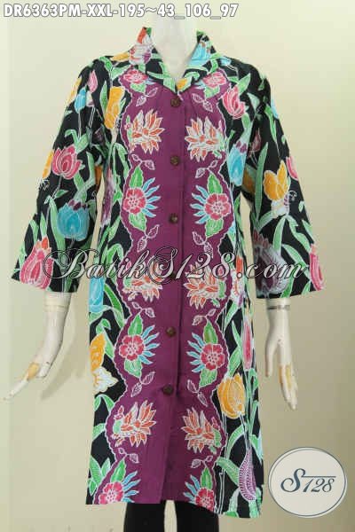 Koleksi Terbaru Produk Pakaian Batik Wanita Gemuk, Dress Batik Kerah Langsung Warna Bagus Bahan Adem Proses Kombinasi Tulis Untuk Penampilan Lebih Bergaya [DR6363PM-XXL]