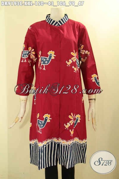 Koleksi Terkini Baju Batik Dress Solo Ukuran Jumbo Spesial Untuk Wanita Gemuk, Pakaian Batik Kekinian Desain Mewah Dengan Harga Murah Meriah [DR9193C-XXL]