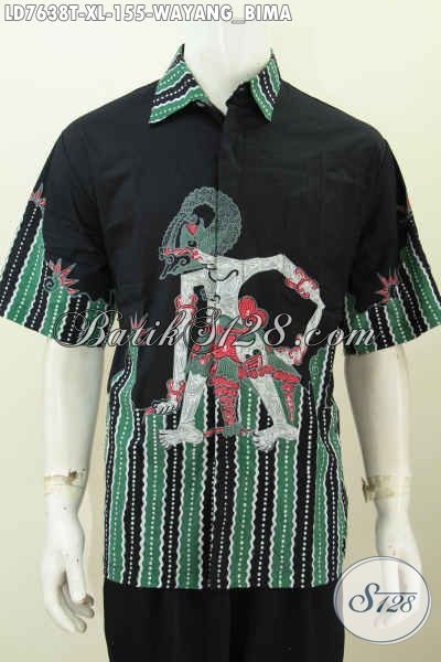 Koleksi Terkini Baju Batik Jawa Lengan Pendek Motif Wayang Bima Trend Mode 2018, Busana Batik Tulis Istimewa Untuk Penampilan Makin Gaya [LD7638T-XL]