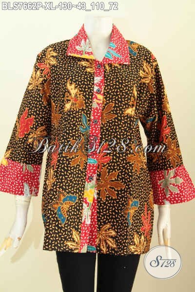 Koleksi Terkini Baju Batik Wanita Model 2017, Busana Batik Solo Halus Proses Printing Desain Trendy Bahan Halus Kwalitas Istimewa Pakai Kerah Bulat, Tampil Mempesona [BLS7662P-XL]