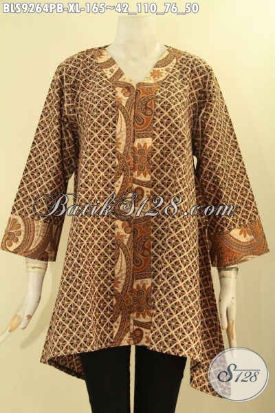 Koleksi Terkini Busana Batik Atasan Wanita Kerja, Pakaian Batik Halus Kombinasi 2 Motif Nan Berkelas Model A Dengan Kerah V Tren Masa Kini, Baju Batik Solo Lengan 7/8 Pakai Kancing Depan, Cocok Juga Buat Ke Kondangan [BLS9264PB-XL]