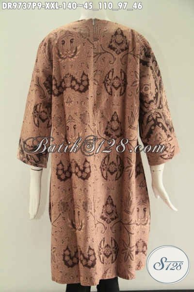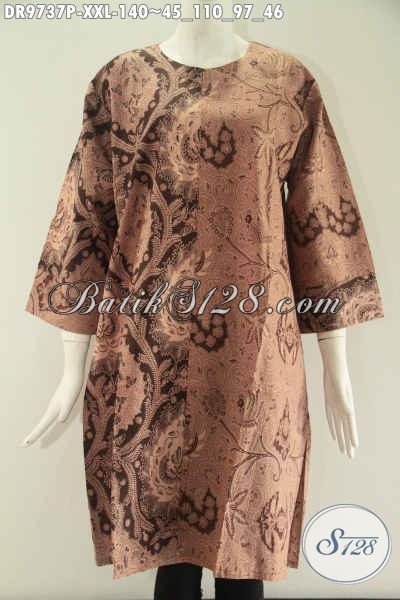 Koleksi Terkini Busana Batik Wanita Big Size Spesial Untuk Yang Berbadan Gemuk, Baju Batik Tanpa Kerah Lengan 7/8 Pakai Resleting Belakang Pas Banget Untuk Kerja Kantoran Dan Ke Kondangan [DR9737PB-XXL]