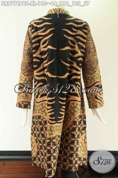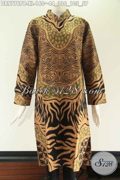 Koleksi Terkini Busana Batik Wanita Untuk Kerja Maupun Acara Resmi, Tunik Batik Solo Motif Elegan Desain Berkelas Kerah Shanghai Resleting Belakang Lengan 7/8 [DR9776PB-XL]