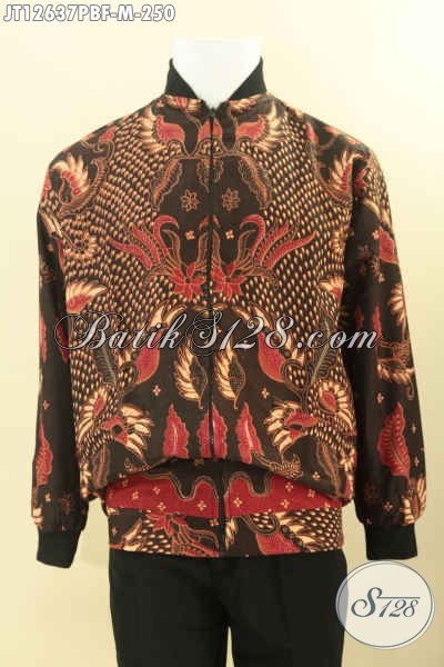 Koleksi Terkini Jaket Batik Solo Kwalitas Istimewa Motif Bagus Jenis Print Cabut, Jaket Bomber Kekinian Yang Di Sukai Kawula Muda Masa Kini [JT12637PBF-M]