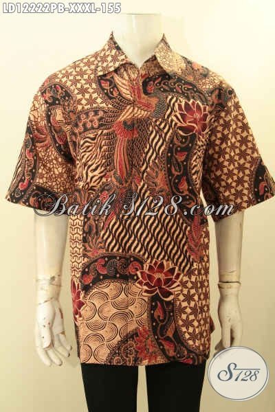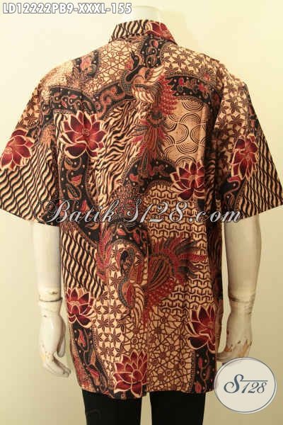 Koleksi Terkini Kemeja Batik Lengan Pendek Pria Gemuk Motif Elegan, Pakaian Batik Hem Terbaru Jenis Printing Cabut Menunjang Penampilan Lebih Sempurna [LD12222PB-XXXL]