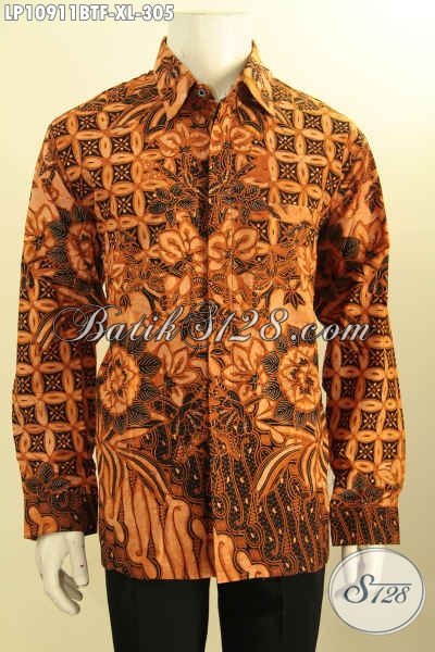 Koleksi Terkini Kemeja Lengan Panjang Pria Full Furing, Busana Batik Solo Elegan Mewah Motif Klasik Proses Kombinasi Tulis, Pas Banget Buat Rapat [LP10911BTF-XL]