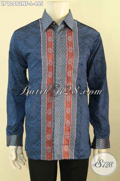 Koleksi Terkini Kemeja Tenun Lengan Panjang Mewah Khas Jawa Tengah, Pakaian Pria Bahan Tenun Halus Motif Baru Daleman Full Furing, Penampilan Berkelas Bak Pejabat [LP12492NF-L]