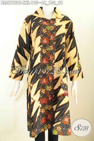 Koleksi Terkini Model Baju Batik Kombinasi Untuk Wanita Gemuk, Blus Batik Istimewa Cocok Buat Kerja Dan Santai Ukuran 3L [BLS6775BT-XXL]