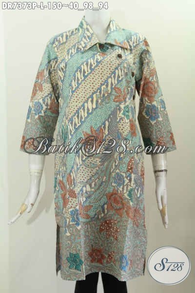 Koleksi Terkini Toko Batik Online, Dress Batik Kancing Miring Motif Keren Proses Printing, Pakaian Batik Kerah Lancip Harga 150K [DR7373P-L]