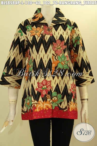 Model Baju Batik Atasan Blouse Kemeja Dengan Krah Serta Pakai Kancing Depan Lengan 7/8, Pakaian Batik Printing Motif Klasik Rangrang Tirtatedja Hanya 130K [BLS8584P-L]