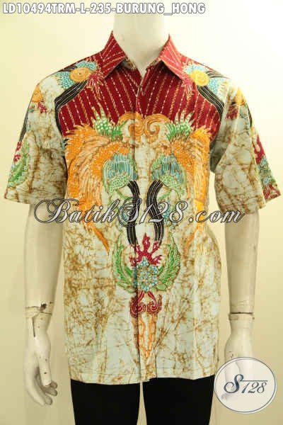 Model Baju Batik Atasan Pria, Hem Lengan Pendek Tulis Remekan Kwalitas Bagus Bahan Adem Motif Burung Hong, Cocok Buat Ngantor [LD10494TRM-L]