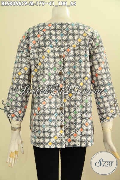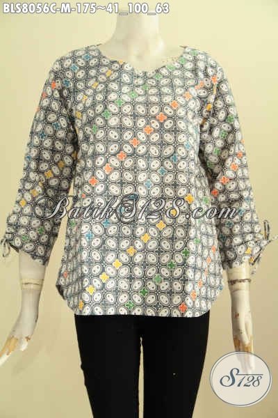 Model Baju Batik Atasan Wanita, Blus Batik Tanpa Krah Dengan Kancing Belakang, Bahan Halus Desain Lengan Bertali Serta Ujung Bawah Berlubang [BLS8056C-M]