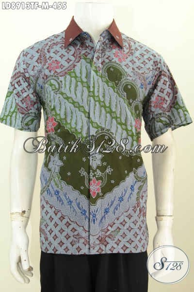 Model Baju Batik Atassan Pria 2019, Busana Batik Solo Mewah Full Furing Lengan Pendek Motif Bagus Tulis Asli Hanya 455K [LD8913TF-M]