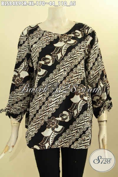 Model Baju Batik Blouse Wanita Motif Elegan Klasik, Busana Batik Istimewa Proses Cap Desain Lengan Bertali Serta Pakai Kancing Belakang, Tampil Lebih Berkelas [BLS8489CR-XL]