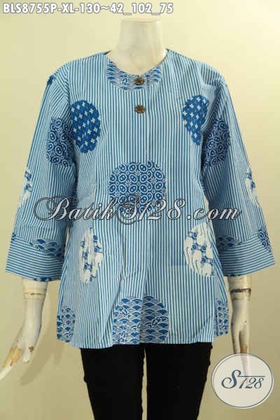 Model Baju Batik Blouse Wanita Size XL, Busana Batik Tanpa Kerah Lengaan 7/8 Motif Unik Pakai Kancing Depan, Tampil Trendy Dan Berkelas [BLS8755P-XL]