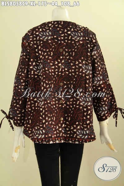 Model Baju Batik Blus Buatan Solo, Pakaian Batik Keren Warna Klasik Berkelas, Model Tanpa Krah Dengan Lengan Bertali Dan Pakai Kancing Belakang Proses Cap Hanya 175K [BLS8058C-XL]