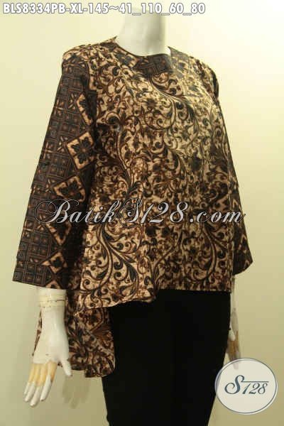 Model Baju Batik Blus Cocok Buat Kerja Dan Acara Resmi, Busana Batik Solo Halus Desain Belakang Panjang Dari Depan Lengan Tumpuk Motif Berkelas Printing Cabut Hanya 100 Ribuan [BLS8334PB-XL]
