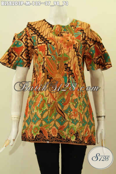 Model Baju Batik Blus Wanita Dengan Lobang Di Lengan Serta Pakai Kancing Belakang, Bahan Adem Motif Keren Proses Printing Hanya 135K [BLS8203P-M]