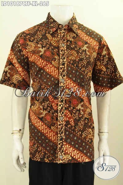 Model Baju Batik Cowok Elegan, Kemeja Batik Solo Mewah Halus Full Furing, Hem Lengan Pendek Motif Klasik Cap Tulis Harga Terjangkau [LD10187CTF-XL]