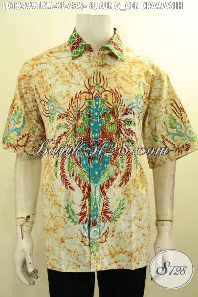 Model Baju Batik Cowok Keren Lengan Pendek Motif Burung Cendrawasih, Hem Batik Kwalitas Istimewa Proses Tulis Remekan Harga 200 Ribuan [LD10499TRM-XL]