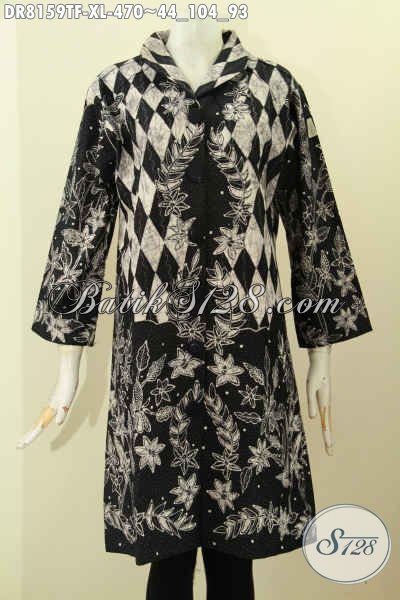 Model Baju Batik Dress Solo Premium Dengan Krah Shanghai, Pakaian Batik Mewah Full Furing Motif Tulis Asli, Penampilan Terlihat Berkelas [DR8159TF-XL]