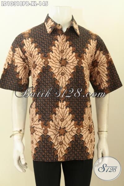 Model Baju Batik Elegan Lengan Pendek, Produk Busana Batik Solo Istimewa Proses Printing Harga 100 Ribuan, Pas Untuk Acara Resmi [LD10318PB-XL]