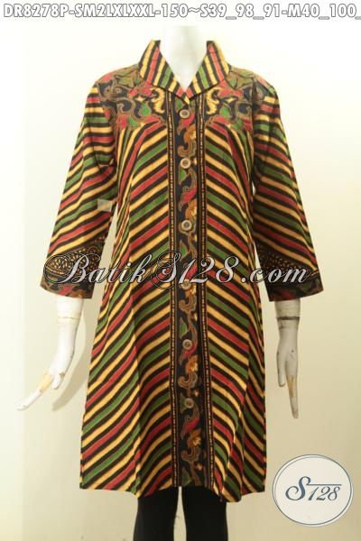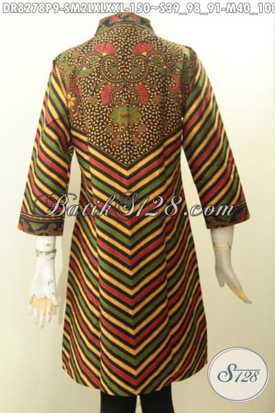 Model Baju Batik Elegan Motif Klasik Printing Tren Masa Kini, Busana Batik Dress Solo Berkelas Dengan Krah Langsung Bahan Adem Menunjang Penampilan Lebih Istimewa [DR8278P-XL]