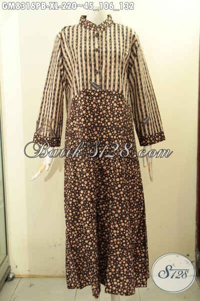 Model Baju Batik Gamis 2 Motif Yang Bikin Wanita Terlihat Anggun Dan Elegan, Busana Batik Muslim Wanita 2018 Kancing Depan Dengan Krah Shanghai Hanya 200 Ribuan [GM8316PB-XL]