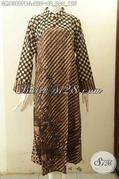 Model Baju Batik Gamis Dual Warna, Busana Batik Istimewa Dengan Krah Shanghai Bahan Adem Proses Printing Cabut Motif Klasik Di Lengkapi Resleting Belakang, Tampil Makin Menawan [GM8389PB-L]