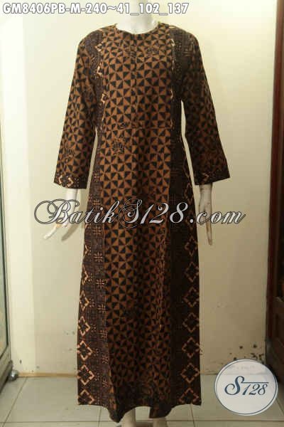 Model Baju Batik Gamis Kombinasi, Busana Batik Elegan Motif Klasik Variasi Dua Warna Di Lengkapi Resleting Depan, Pas Banget Untuk Acara Resmi Tampil Gaya [GM8406PB-M]