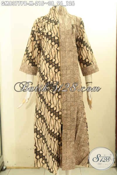 Model Baju Batik Gamis Motif Kombinasi Nan Mewah Dan Berkelas, Pakaian Batik Istimewa Desain Relseting Depan Bahan Adem Proses Printing Cabut, Di Jual Online 215K [GM8377PB-M]