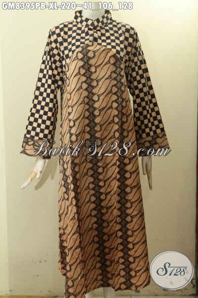Model Baju Batik Gamis Nan Istimewa, Pakaian Batik Solo Elegan Krah Shanghai Motif Klasik Kombinasi 2 Warna Printing Cabut Di Lengkapi Resleting Belakang Lebih Nyaman Dan Modis [GM8395PB-XL]