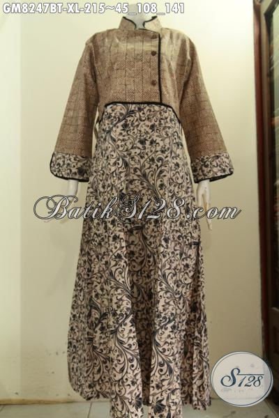 Model Baju Batik Gamis Wanita Dewasa, Pakaian Batik Kerja Dan Acaraq Resmi Wanita Berhijab Tampil Anggun Dan Cantik [GM8247BT-XL]