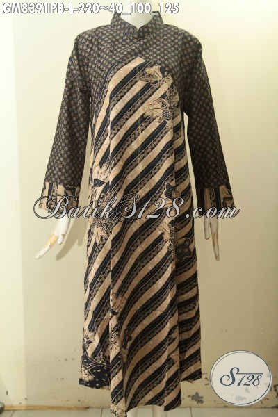 Model Baju Batik Gamis Wanita Untuk Penampilan Cantik Dan Anggun, Pakaian Batik Abaya Wanita Muslimah Dengan Resleting Belakang Dan Krah Shanghai Berpadu Dual Warna Motif Klasik Printing Cabut Hanya 220K [GM8391PB-L]