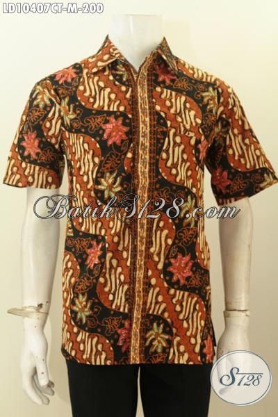 Model Baju Batik Hem Lengan Pendek Keren, Busana Batik Solo Halus Motif Klasik Proses Cap Tulis, Pria Terlihat Tampan Dan Elegan [LD10407CT-M]