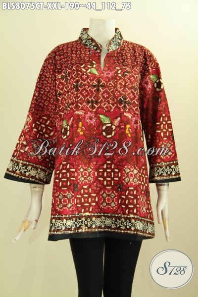 Model Baju Batik Istimewa Untuk Menunjang Penampilan Yang Sempurna, Pakaian Batik Wanita Gemuk Krah Shanghai Ukuran Jumbo, Pas Buat Ke Kantor [BLS8075CT-XXL]
