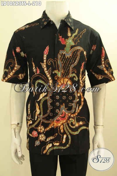 Model Baju Batik Kerja Kantoran Untuk Pria Size L, Busana Batik Kemeja Dasar Hitam Motif Keren, Tampil Terlihat Gagah Elegan [LD10523TS-L]