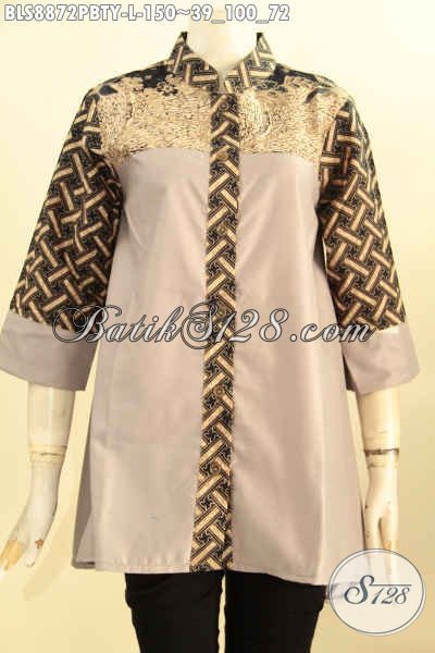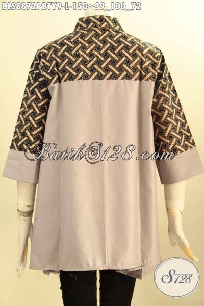 Model Baju Batik Kerja Nan Modis, Busana Batik Blouse Wanita Kekinian Kerah Shanghai Bahan Adem Motif Bagus Kombinasi Kain Katun Polos Toyobo, Tampil Cantik Mempesona [BLS8872PBTY-L]