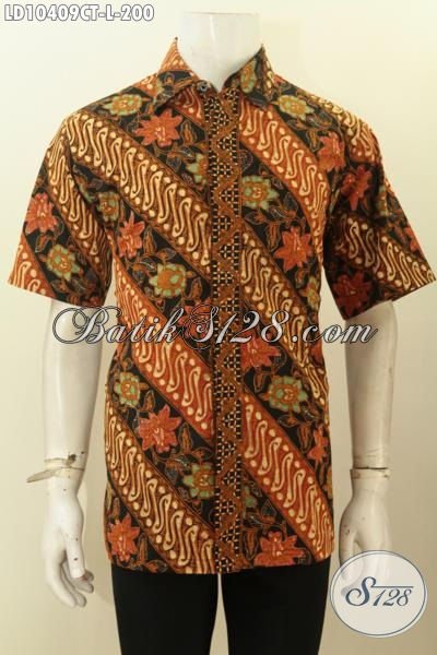 Model Baju Batik Kerja Pria Size L, Hem Batik Halus Motif Parang Bunga Proses Cap Tulis, Kemeja Batik Lengan Pendek Solo Kwalitas Mewah Harga Terjangkau [LD10409CT-L]