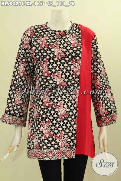 Model Baju Batik Kerja Wanita 2019, Blus Pias Kancing Belakang Motif Keren Proses Cap Kombinasi Polos, Bikin Penampilan Cantik Mempesona [BLS8023C-XL]