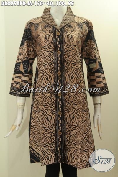 Model Baju Batik Kerja Wanita Kantoran, Dress Krah Langsung Motif Bagus Kwalitas Istimewa Proses Printing Cabut, Penampilan Cantik Menawan [DR8258PB-M]