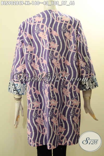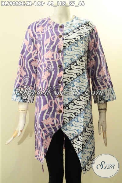 Model Baju Batik Kerja Wanita Karir Nan Berkelas, Busana Batik Modis Motif Kombinasi Model Lengan Panjang 7/8 Kancing Depan, Tampil Gaya Saat Kerja Dan Acara Resmi [BLS9028C-XL]