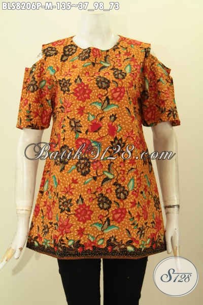 Model Baju Batik Kerja Wanita Muda, Blus Keren Kancing Belakang Dengan Lengan Lobang Bahan Halus Proses Printing, Penampilan Cantik Mempesona [BLS8206P-M]