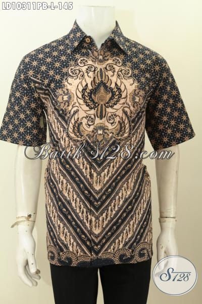Model Baju Batik Klasik Pria Lengan Pendek, Pakaian Batik Solo Terkini Proses Printing Cabut, Di Jual Online 145 Ribu Saja [LD10311PB-L]