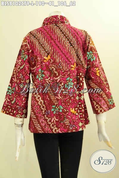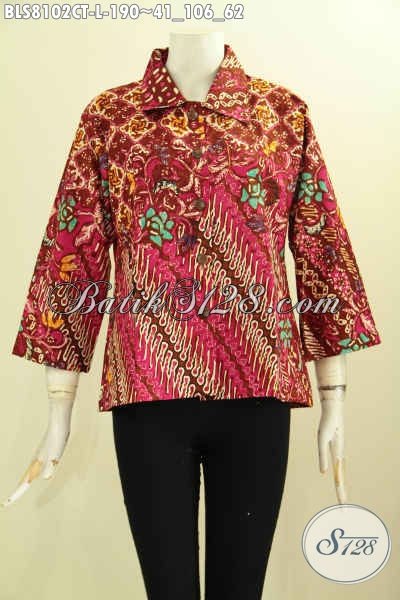 Model Baju Batik Kombinasi Dual Motif, Pakaian Batik Blus Istimewa Proses Cap Tulis Dengan Krah Lancip, Penampilan Makin Sempurna [BLS8102CT-L]