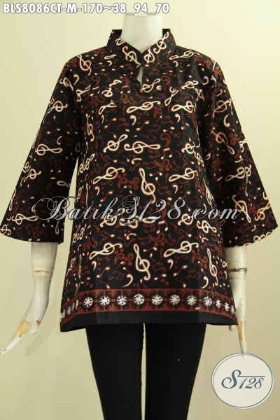 Model Baju Batik Kwalitas Bagus Harga Terjangkau, Pakaian Batik Krah Shanghai Untuk Seragam Kerja Kantoran, Wanita Muda Terlihat Mempesona [BLS8086CT-M]