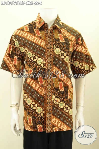 Model Baju Batik Lengan Pendek Pria Gemuk, Busana Batik Jumbo Full Furing Motif Klasik Trend Masa Kini, Pas Buat Ngantor [LD10191CTF-XXL]