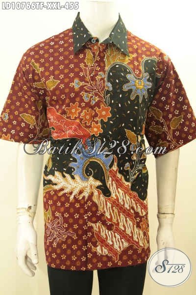 Model Baju Batik Lengan Pendek Pria L3, Hem Batik Jumbo Premium Full Furing Mewah Berkelas Mmotif Proses Tulis, Bikin Penampilan Lebih Berwibawa [LD10766TF-XXL]