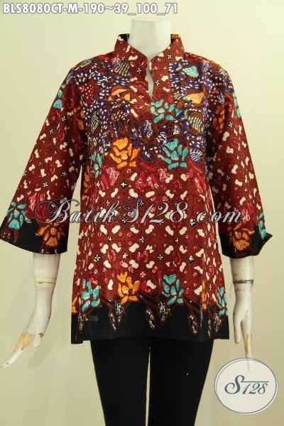 Model Baju Batik Modis Keren Dan Elegan Buatan Solo, Blus Batik Krah Shanghai Motif Kekinian Proses Cap Tulis, Di Jual Online 190K, Cocok Untuk Seragam Kerja [BLS8080CT-M]