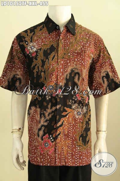 Model Baju Batik Pria Dewasa Ukuran XXL, Pakaian Batik Tulis Lenagn Pendek Full Furing Motif Mewah Asli Dari Solo Harga 400 Ribuan Saja [LD10152TF-XXL]